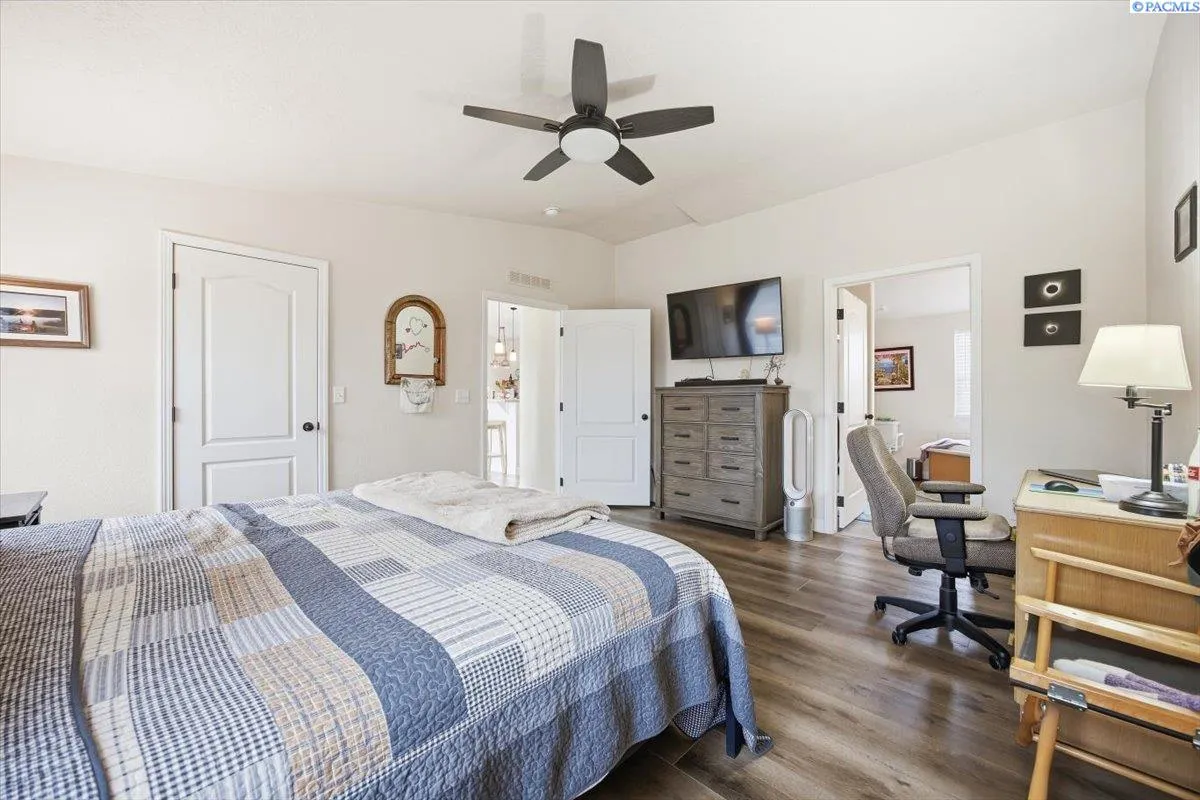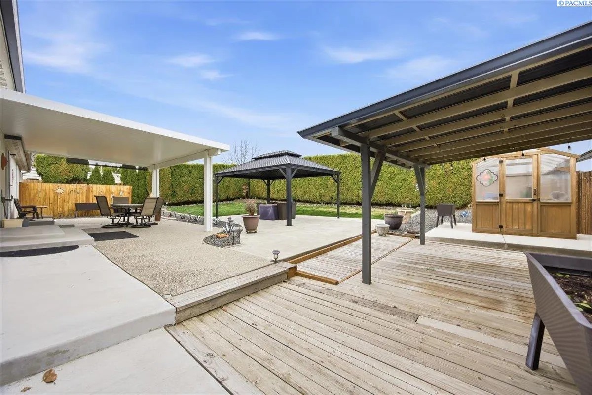 Experience the charm of this 2021 ADA-Approved Custom Modular Home as you approach the front, greeted by a solar light post that enhances curb appeal. As you enter, you’ll be greeted by an open concept living area, filled with natural light, featuring raised ceilings and custom-crafted native ceiling fans from Mexico add a unique touch, with strategically placed light switches and lamps in the living room and dining area to complement the aesthetic. The gorgeous kitchen seamlessly flows into the dining combo, showcasing beautiful countertops, tall white cabinets, and a pantry. It’s equipped with stainless steel appliances, including a double oven stove and LED lighting, perfect for culinary enthusiasts. Moving towards the spacious laundry room, you’ll appreciate the convenient layout that enhances functionality. A water treatment system and a doggie dog for pet friendly families. The home features three large bedrooms, including dual primary suites. Primary Suite #1 boasts Alpine Cedar laminate flooring, abundant natural light, a garden tub, shower combination, and walk-in closets. Primary Suite #2 is modified for extra space, ideal for exercise or an office, and is ADA approved with roll-in showers and wide doors. The front exterior features beautiful Arborvitae Trees that line your front yard providing maximum privacy and comfort in your plush green landscape. Leading up to the home is a steel ADA-Approved Ramp built for wheelchair access. A newly paved asphalt driveway and pristine condition exterior siding and solar screened windows. The exterior back showcases a custom patio cover, a gorgeous greenhouse for gardening enthusiasts, large gazebo, outdoor shed, and a karaoke setup for outdoor entertainment, all lined by private Arborvitae Trees for backyard privacy. A two-car garage, modified with a tandem bay for large boats, provides ample storage, 220 watt amp, drain field in garage entry to prevent puddling. The property is equipped with an efficient irrigation system and rain gutters to manage water runoff, along with regular maintenance updates for ease of ownership. This custom modular home combines modern design, accessibility, and eco-friendliness, offering an exceptional living experience and a unique opportunity for buyers seeking a move-in-ready property filled with thoughtful upgrades.