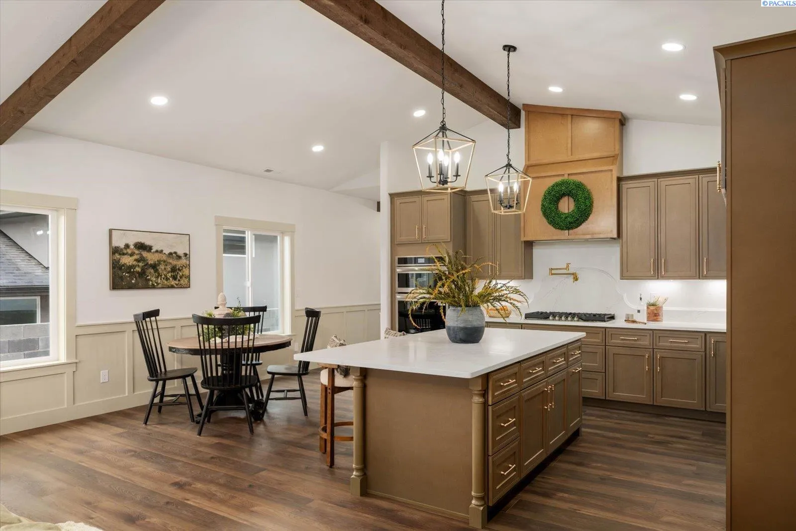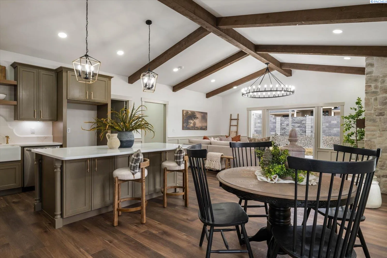 MLS# 291437 Welcome to this beautiful home, where timeless cottage charm meets modern design. This beautifully crafted 2,296 sq ft single-level rambler by A-Legacy features stunning beam details that bring warmth and character to the open-concept living space. Designed for both everyday living and entertaining, the heart of the home is the spacious kitchen complete with a large island, beautiful farmhouse sink, and seamless flow into the dining and great room.Offering 4 bedrooms and 3 bathrooms, this thoughtfully designed layout provides flexibility and comfort, including a private primary suite perfect for unwinding. Every detail reflects quality craftsmanship and intentional design, creating a home that feels both elevated and inviting. Located in the desirable Siena Hills community, this home offers the perfect blend of style, function, and single-level living.