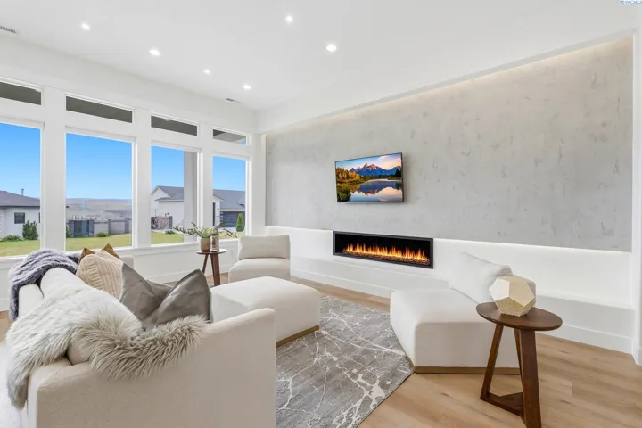 MLS# 291436 Clean Modern Lines, Luxuriously Designed Step into elevated living with this stunning, custom-built home in the highly sought-after Southcliffe neighborhood?perfectly positioned across from a brand-new community park and walking path. Designed with a calming modern, clean line aesthetic. Built in 2023 as the architect?s personal residence, every detail reflects exceptional quality and intentional design. Inside, you?ll love the durable luxury vinyl plank and tile flooring, complemented by a striking linear fireplace set against a Venetian-finish accent wall?creating a warm yet sophisticated focal point. The gourmet kitchen is made for gathering, featuring a dramatic marble waterfall island. A beautiful unique feature is the gorgeous buffet with wine cooler, in the dining area where it belongs. Sleek finishes that elevate both style and function. The spa-inspired primary suite is your private retreat, complete with its own fireplace and a luxurious bath featuring a marble waterfall countertop?bringing a touch of everyday indulgence. One of the bedrooms features a built-in workspace easily used as an office/but also big enough to be the 4th bedroom. Every detail from the beautiful living space the abundance of cabinetry in the laundry room provides the highest level of quality and convenience to your lifestyle. We are not finished there, outside, the expansive backyard invites endless possibilities with a covered patio, distant views, and plenty of space to create your dream outdoor oasis?whether that?s a pool, garden, or play area. This is more than a home, it?s a lifestyle. Don?t miss your opportunity to own something truly special.