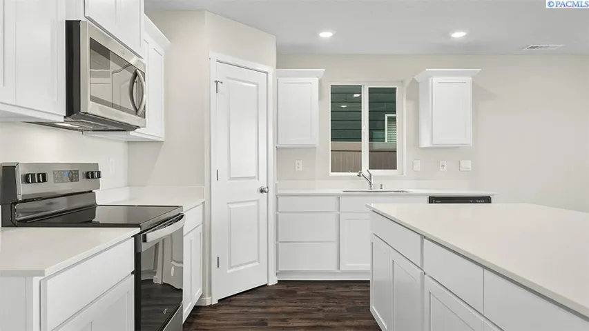 $10K Flex Cash Credit available. Use toward closing costs, options, and upgrades. GRAND OPENING of Glacier Park new home community. Roam the Rowan – a 2-story floor plan at Glacier Park in Pasco, Washington! This thoughtful layout has 1,819 square feet, 4 bedrooms, 2.5 bathrooms, and a handy-dandy 2-car garage. Wipe your paws at the covered porch and enter the open concept main level. There’s a powder room to the left next to the stairs. The L-shaped kitchen has lots of storage, including a large corner pantry and an island with a breakfast bar. Stainless-steel appliances and solid quartz counters create a timeless style. The great room contains an electric fireplace to curl up in front of. Race upstairs to find the bedrooms. The 4th bedroom is large and would make a great media room and/or home office. The laundry room has room for storage and is centrally located. The palatial primary has an ensuite bathroom (complete with water closet) and a good-sized walk-in closet. There’s a fenced yard out back for gardening and relaxing in the sunshine, and the front yard has low-maintenance irrigated landscaping for extra curb appeal. Smart features included with the home (such as a doorbell camera and thermostat) and a 10-year limited warranty provide peace of mind with your purchase. Photos are representative of plan only and may vary as built. Schedule a tour today! Our model home located at 6415 Polar Dr is open daily 11 to 5:30pm.
