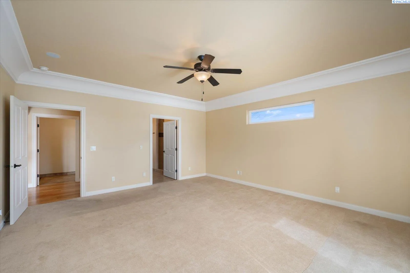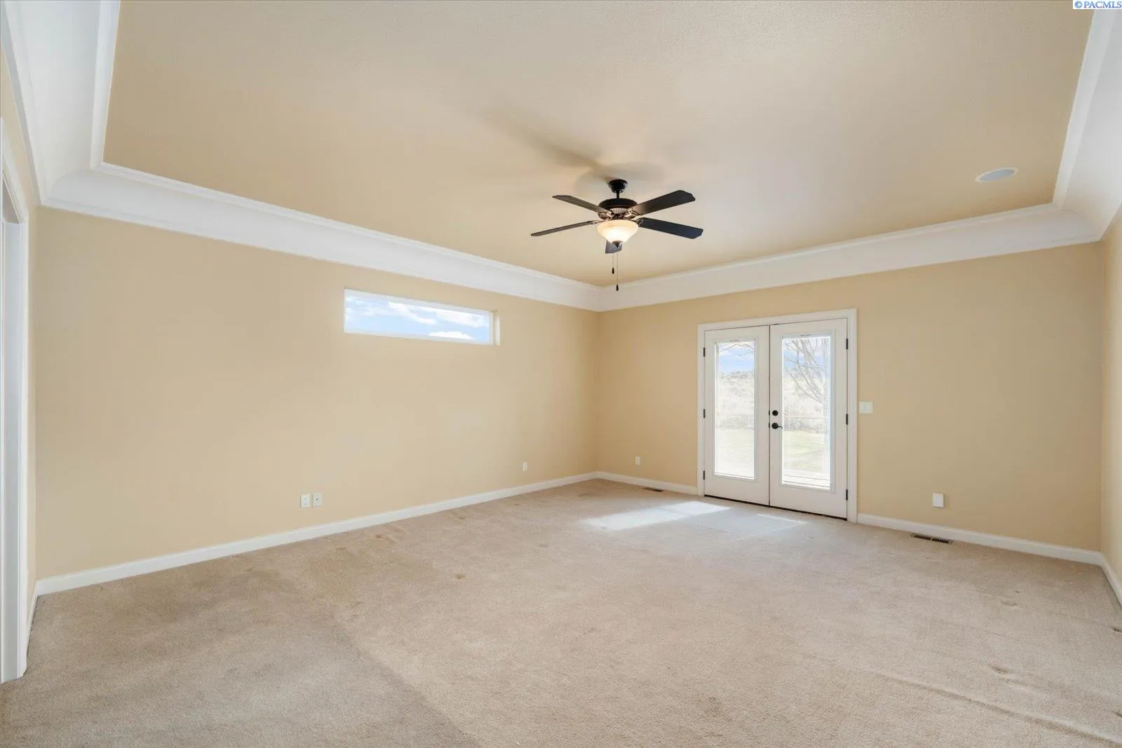 MLS# 291449 Experience refined, single-level living in this exceptional high-end home, where luxury meets thoughtful design at every turn. Perfectly positioned to capture sweeping views and backing to protected land that can’t be built on, this property offers both privacy and a truly serene setting.Step inside to discover elevated finishes throughout, including rich true hardwood floors, elegant crown molding, and raised ceilings that create a bright, open, and sophisticated atmosphere. Designed for both everyday comfort and upscale entertaining, the home features a formal dining room, and dedicated office space—giving you flexibility for work, hosting, and relaxation.At the heart of the home, the chef’s kitchen is nothing short of impressive. Outfitted with premium Thermador cooktop, a statement range perfectly positioned to take in the views, and a large island for gathering, this space is as functional as it is beautiful. Thoughtful upgrades include pull-out shelving in all lower cabinets, built-in spice racks, rotating pantry shelves, and even a built-in trash compactor—making organization effortless.This home offers three spacious bedrooms, each designed as its own private retreat with ensuite bathrooms and walk-in closets—a rare and highly desirable feature. The primary suite elevates everyday living with a spa-inspired bathroom, complete with a walk-in shower featuring body sprays and a luxurious rain head and a massive walk-in closet with built in’s.Additional premium features include surround sound speakers with equipment that stays, central vacuum system, built-in cabinetry along the fireplace, and a water softener—every detail carefully curated for convenience and comfort.With a rare combination of high-end finishes, functional upgrades, and a setting that preserves your views and privacy, this home delivers an unmatched living experience for the most discerning buyer.