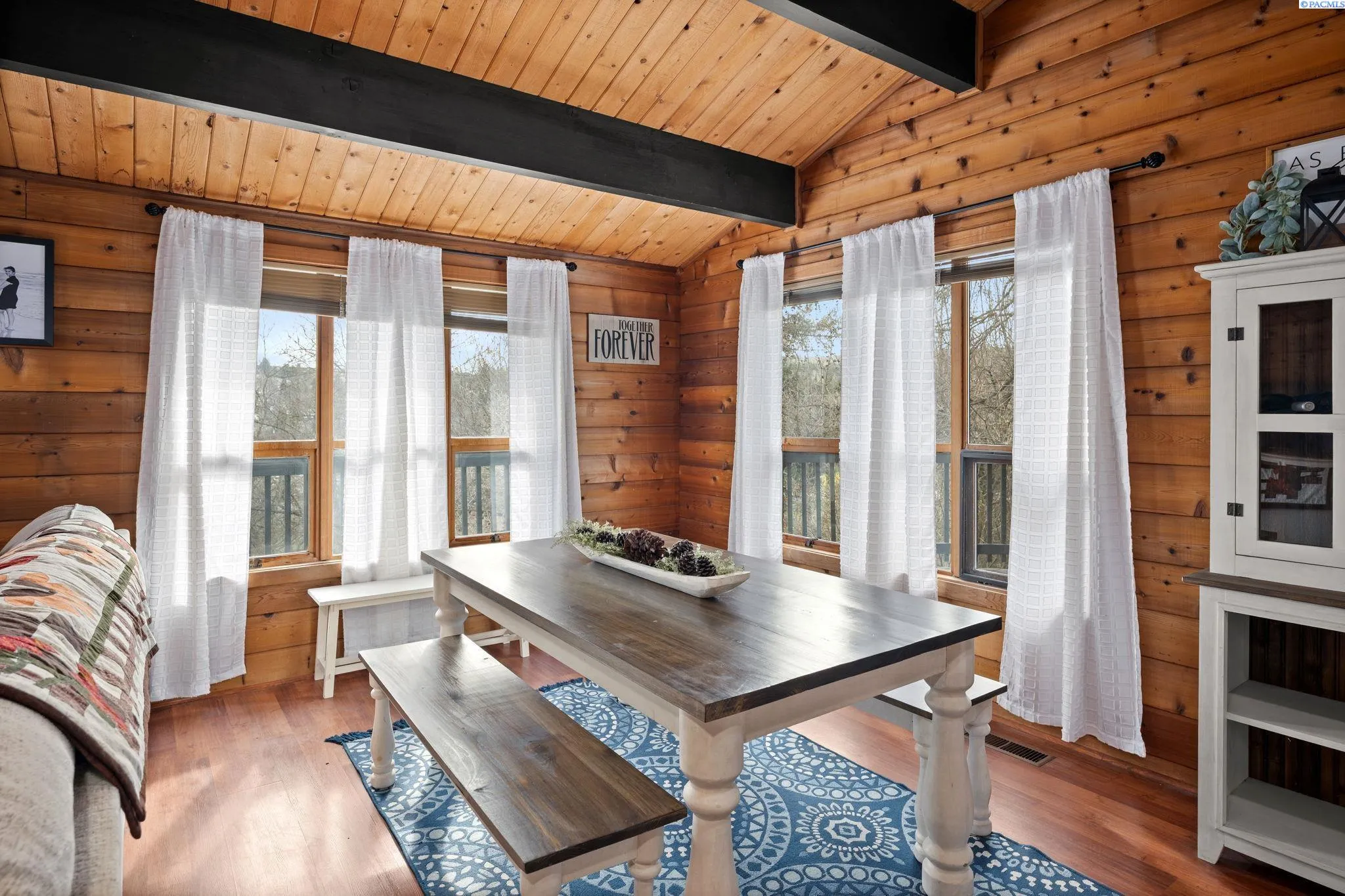 Charming and quaint cedar home featuring 3 bedrooms and 2 baths. Rustic charm and modern comfort. Many recent updates to the home include: new kitchen, stone countertops, new A/C, new hot water heater, new metal roof. In addition to the VIEWS, it is extremely quiet and a very private location. Appliances are included. A great place to relax and enjoy the surroundings. Stainless appliances, open concept, walk out onto peaceful deck and yard, plus bedrooms are very sizable. Main floor bedroom is especially spacious. Lower level has a nice family room area with closet for games etc.. Enjoy the character of Cedar Construction paired with modern improvements to make this home move-in ready. Call today to schedule your showing!