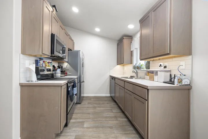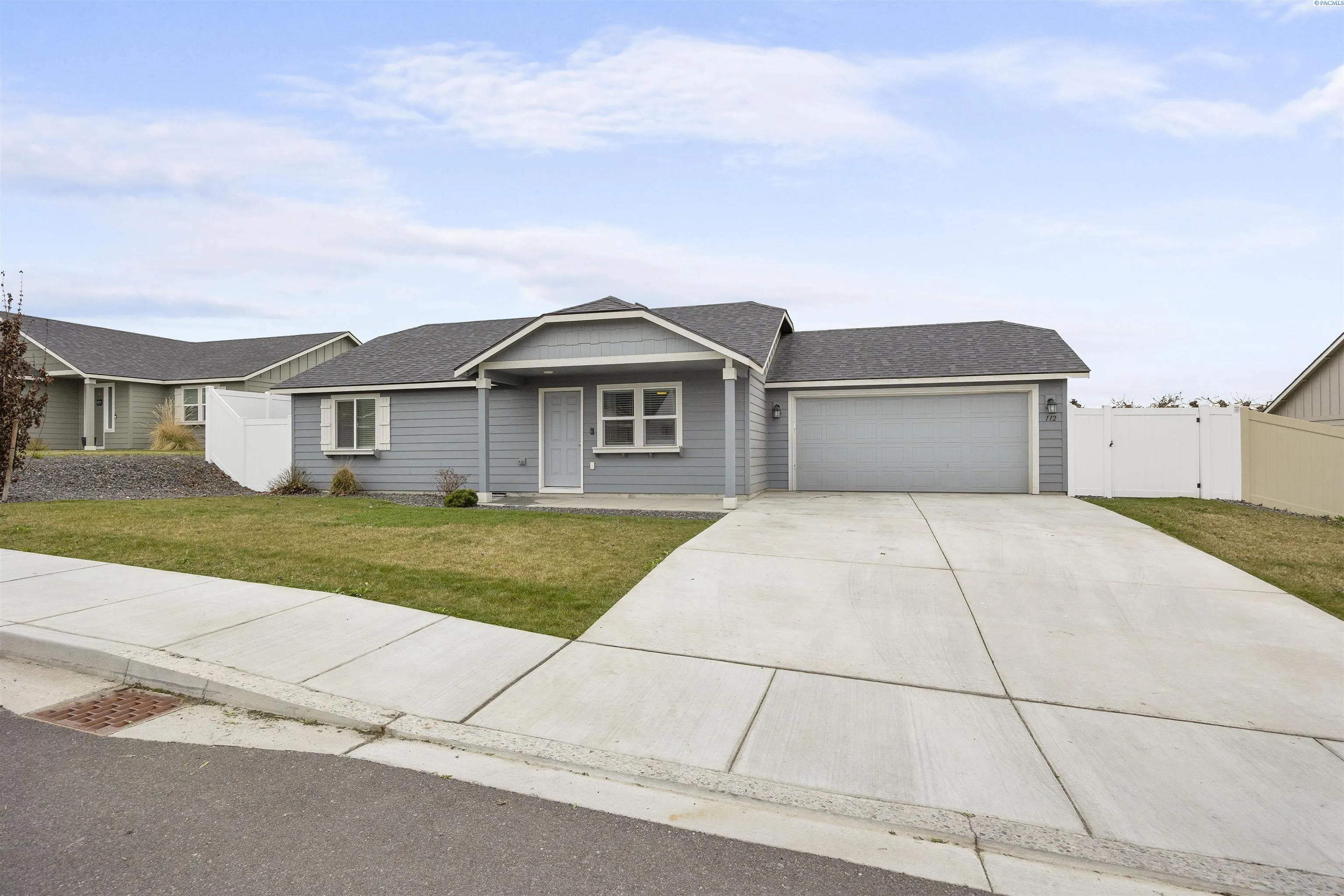Built just two years ago in Grandview, this affordable single-level home is located in a great neighborhood of newer homes. The home features an efficient floor plan with 1,008 sq. ft. of living space, including 3 bedrooms and 2 bathrooms. Step inside where you will find vaulted ceilings that enhance the bright, open feel in the living area. The kitchen offers laminate flooring, ample counter and cabinet space along with a dining area with slider access to the patio, perfect for everyday meals and outdoor dining. The generous primary suite includes its own private bathroom and a spacious closet. The home offers central heat & air to keep you comfortable year ’round. The home also features an attached 2-car garage for all your storage needs. Step outside to a .17 acre lot with a fully fenced backyard, perfect for kids & pets to play, entertaining guests and enjoying the spring and summer months. The yard also includes a dog run, landscaping, and plenty of room for your vegetable garden. Great location, just minutes away from schools and downtown Grandview amenities. Great price for an almost new home in Grandview!