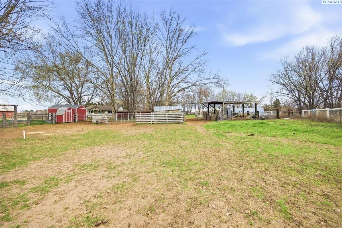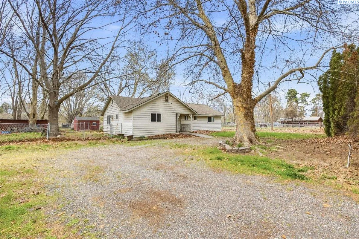5.4 acres set up for horsin around, raising a couple steer, letting the free range chickens run or just about anything else you can dream up! Wow! It’s private, completely flat and fenced for large animals. And, the entire 5.4 acres has irrigation already set up and supplied by the Columbia Irrigation District. Just turn on the water and watch stuff grow!! That’s why it’s all green! And why there are so many trees! It is not in the flood plain out there in West Richland either!! Go take a look… it’s completely high and dry!! The inside of the home needs some imagination and elbow grease… but it’s got an updated roof, good windows and good bones! Now it just needs someone with a dream and some ambition! Come on out and take a look!
