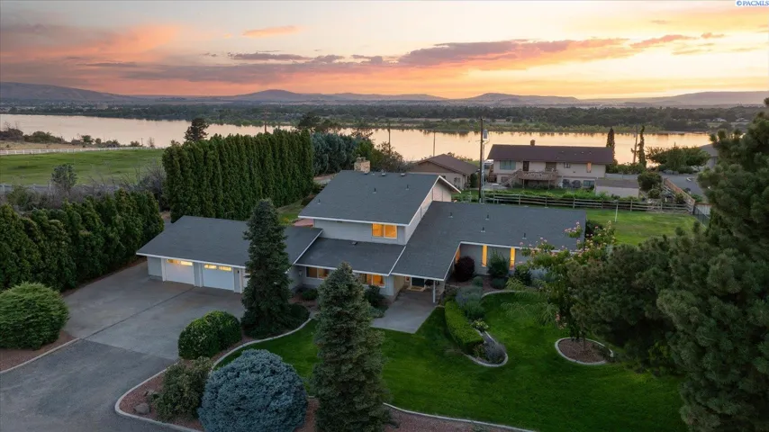MLS# 289954 Quiet country living with a gorgeous view above Eltopia! Relax and unwind in this exceptional 5-bedroom, 5-bathroom home set on a private 3.48-acre retreat, complete with two primary suites and a spacious 36x48 shop. Designed for both comfort and functionality, this property is ideal for those seeking room to spread out, bring the horses, and enjoy wide-open spaces.
